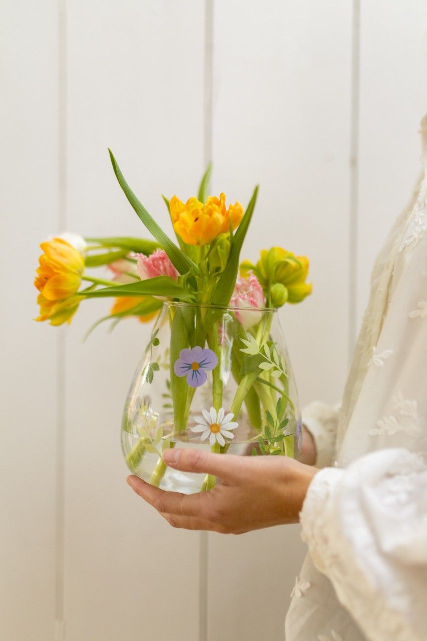 Alle onderdelen van dit theeservies zijn met de hand gedecoreerd. De kleurrijke bloemen en strepen worden met een stempel of kwast op de bekers en bordjes aangebracht. Een echt precisiewerkje, dat met veel liefde en aandacht wordt gedaan. Hierdoor is elk onderdeel van dit handbeschilderde servies uniek! Bekijk het complete servies >