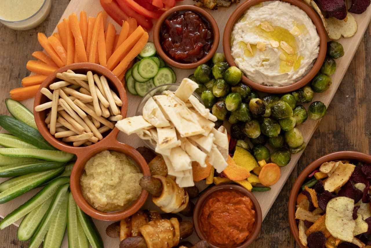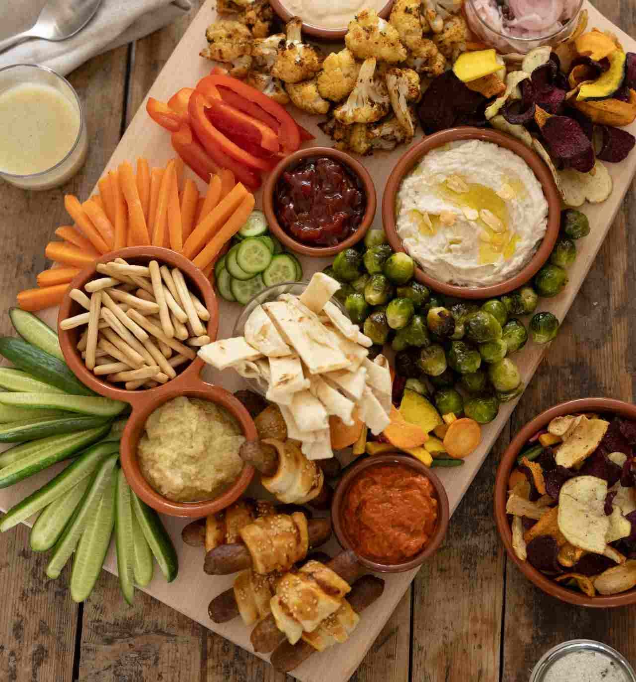 Süß-saures eingelegtes Gemüse wie Gurken, Blumenkohl und Radieschen eignen sich ebenfalls hervorragend für dieses Snackboard. Hier finden Sie das Rezept für süß-saure eingelegtes Sommergemüse.