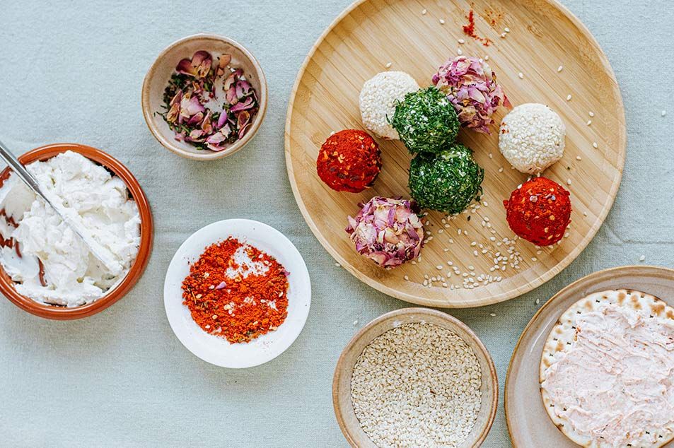 Wunderbar auf Weißbrot oder einfach so zum Aperitif. Unsere Labneh-Bällchen mit Paprikapulver und Chiliflocken, Dill oder Sesam. Durch die verschiedenen Kräuter und Gewürze sehen die farbenfrohen Bällchen besonders appetitlich aus.